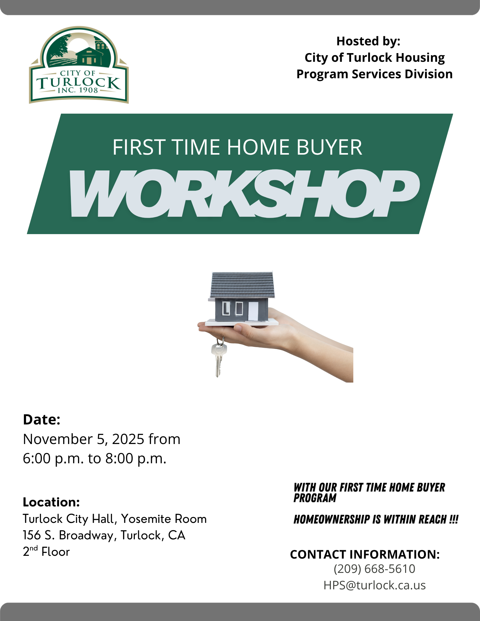 Join us for the First Time Homebuyers Workshop on November 5, 2025 from 6:00 p.m. to 8:00 p.m. Click here for more Information >>